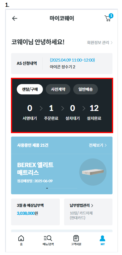 | A/S 신청 | 마이코웨이 > 내 제품 > A/S 신청 | 로그인 필요 |